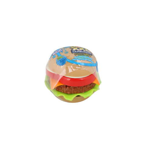 An assortment of flavoured hard boiled candies and dipping powder in the shape of a novelty hamburger. 12 Count. Halal.