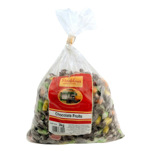 Individually wrapped fruit flavoured hard boiled sweets with a chocolate flavoured centre.3kg. Vegetarian.