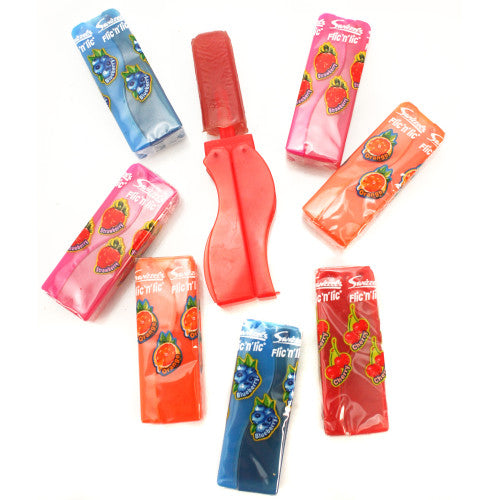 Assorted flavour (cherry, blueberry, orange & strawberry) candy in a plastic holder. 24 count.