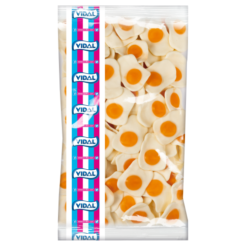 Fruit flavoured gummy sweets in the shape of a giant fried egg. 3kg.