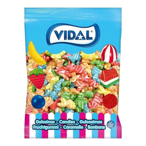 Fruit flavoured gummy sweets with a swirl design, in the shape of a fish. 1.5kg. Gluten Free.